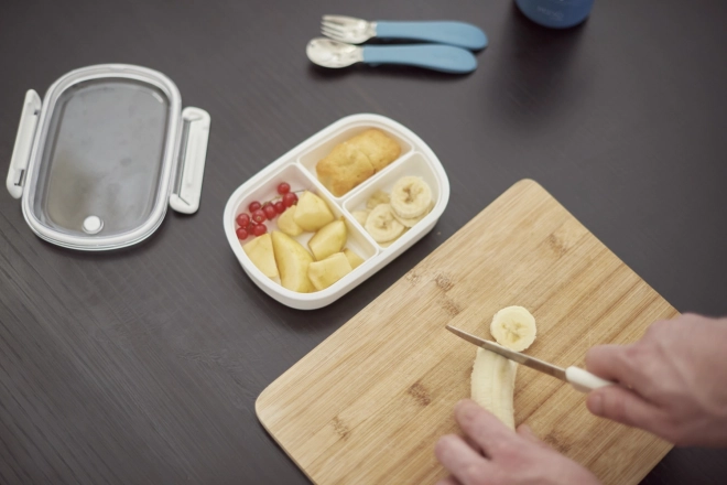 Højt modulært system, ideelt til opbevaring og transport af frokoster, snacks, frugt og grøntsager. Den indvendige indsats består af 3 rum, som kan tages ud hver for sig. Låget har en tætningsring, der forhindrer lækage af væsker.