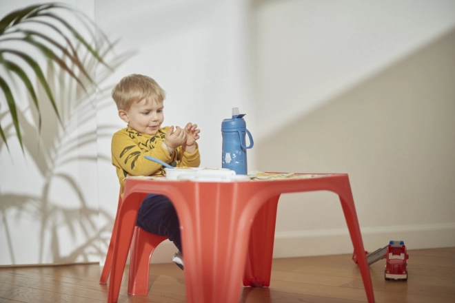 Termoflaske i rustfrit stål med sugerør, hvilket gør den velegnet til børn fra 6 måneder. Den holder indholdet koldt i op til 24 timer eller varmt i op til 12 timer. Tætsluttende låg holder væsken inde i termoflasken, og den praktiske rem gør det nemt at bære og håndtere termoflasken.