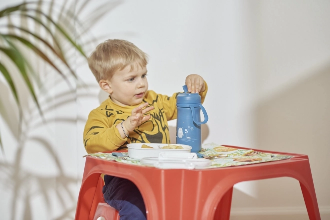 Termoflaske i rustfrit stål med tud, så den er velegnet til børn fra 6 måneder. Den holder indholdet koldt i op til 24 timer eller varmt i op til 12 timer. Tætsluttende låg holder væsken inde i termoflasken, og den praktiske rem gør det nemt at bære og håndtere flasken.
