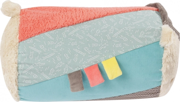 Den integrerede rangle udsender lokkende lyde ved bevægelse, som stimulerer hørelsen og understøtter hånd-øje-koordination. De farverige stoffer og forskellige teksturer giver visuel og taktil stimulering og hjælper dermed med at udvikle finmotorik og sanseopfattelse.