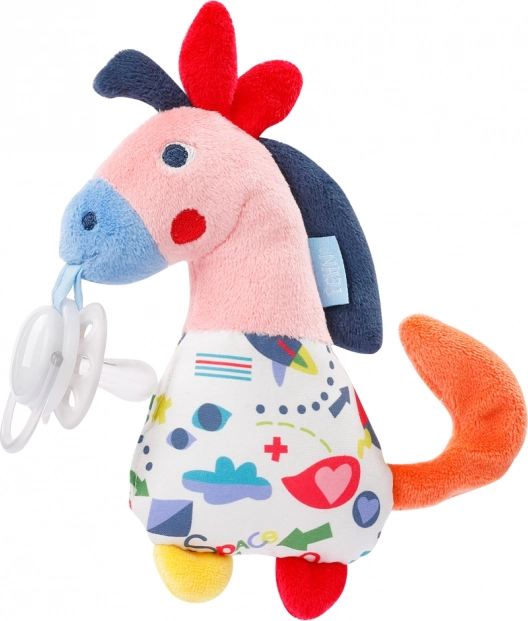 Den søde plyshest fra kollektionen COLOR Friends er det helt rigtige for små opdagelsesrejsende. Plysdyrslegetøjet er ikke kun smukt med sine iøjnefaldende farver og mønstre, men også super praktisk. Den skjulte raslelyd i plyshesten stimulerer barnets hørelse, greb og berøring samt finmotorik.