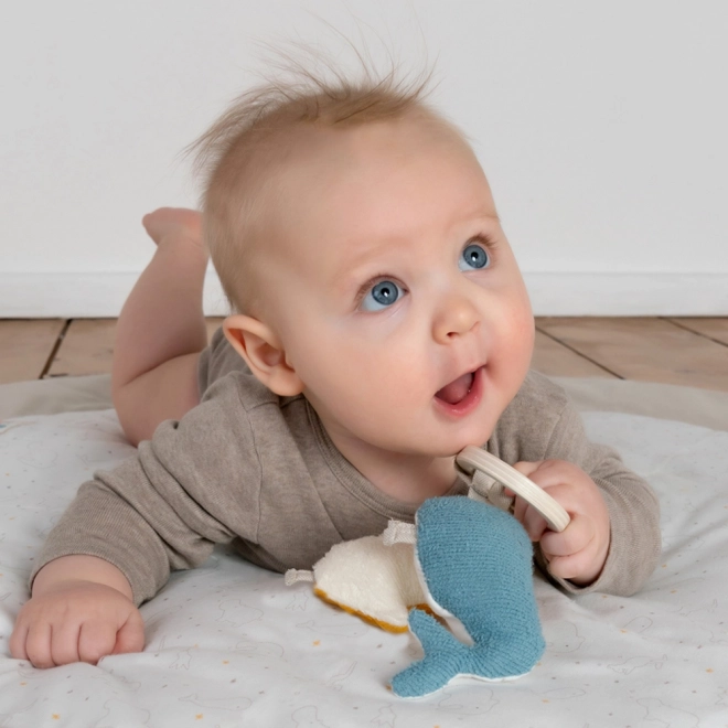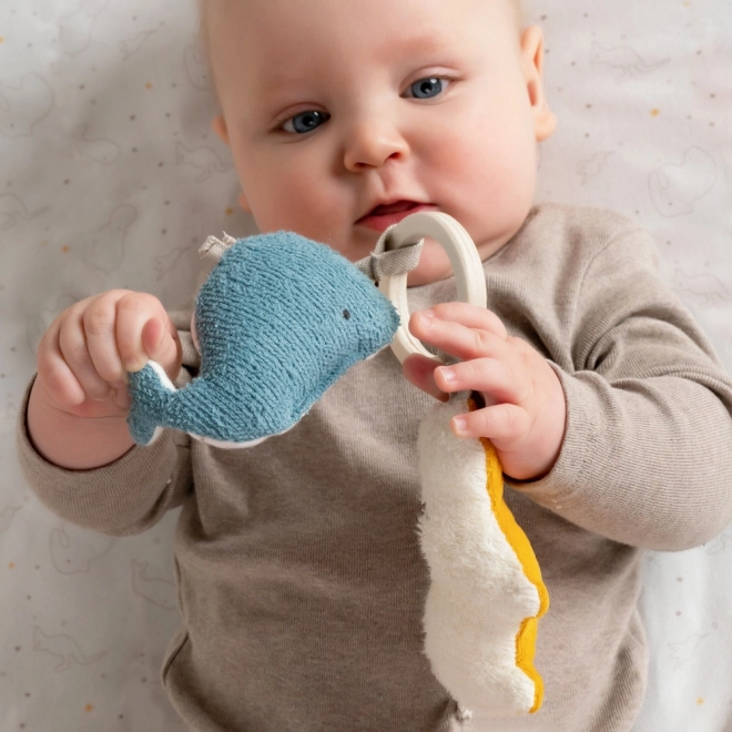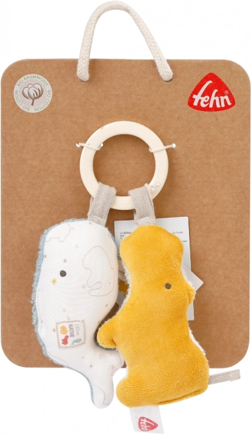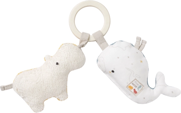 Det søde legetøj i form af to små glade dyr bliver en favorit ved første øjekast. Takket være den praktiske strop kan det fastgøres til barnevogn, tremmeseng, i bilen eller hvor som helst du ønsker. Disse krammevenner er farvemæssigt velegnede både til piger og drenge. Materialet, som legetøjet er lavet af, er meget behageligt at røre ved for små børnehænder. Dyrene fanger legende både nysgerrige børneøjne og -ører, da de også indeholder en rangle.