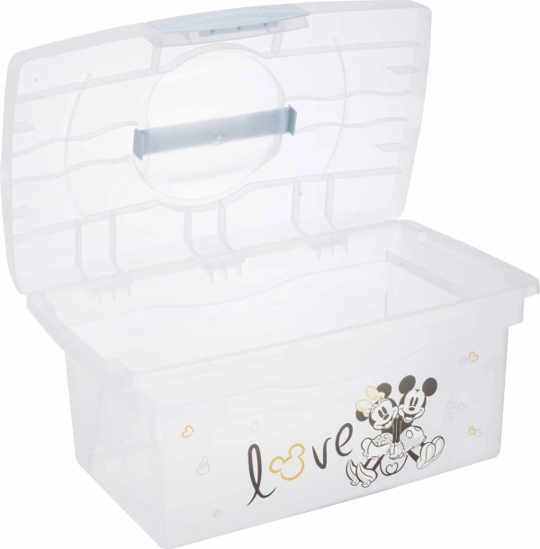 Takket være det slidstærke PP-materiale og nem rengøring med en fugtig klud er boksen et godt valg til daglig brug. Overskuelig opbevaring af legetøj, kosmetik og medicin sparer tid og plads, mens MICKEY-dekoren giver opbevaringsløsningen et legende præg.