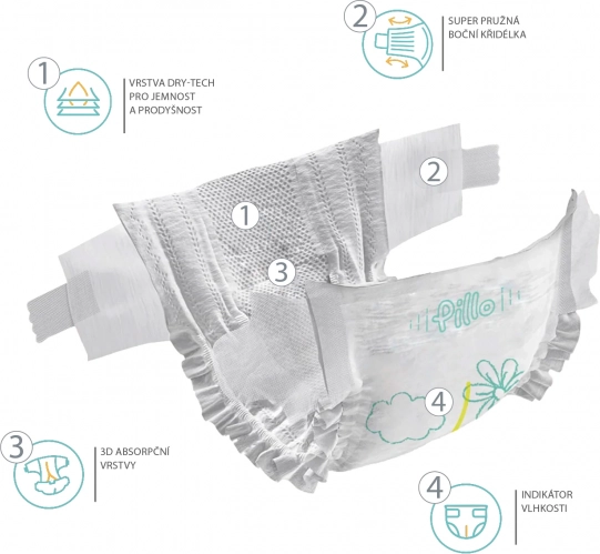 Leder du efter bleer, der er skånsomme mod barnets hud og samtidig pålidelige? Premium engangsbleer i størrelse Mini (4–8 kg) tilbyder en naturlig sammensætning uden parfume, latex og tilsatte cremer, hvilket gør dem ideelle til babyer med tendens til allergi og irritation. Takket være Dryway™-teknologi med tre dræneringskanaler fordeles og låses fugten hurtigt inde, hvilket sikrer op til 12 timers tørhed for en rolig dag og nat.
