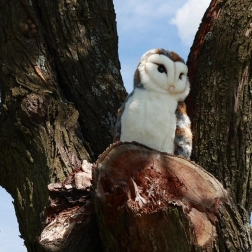 Denne ugle er designet til at minde om en rigtig barn owl med detaljerede farvemønstre.