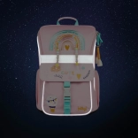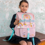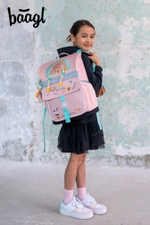 Skolesættet BAAGL Zippy Regnbue pink er et ideelt valg til skolestartere og yngre skolebørn. Den ergonomiske skoletaske med forstærket krop bevarer en stabil form, har et nyudviklet vippelåg for hurtig adgang fra bordet og en praktisk indvendig organizer med elastik til jævn vægtfordeling. Den lave vægt, reflekselementer og robuste vandafvisende materialer sikrer komfort og sikkerhed hver skoledag.