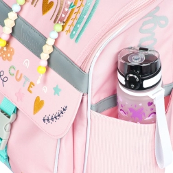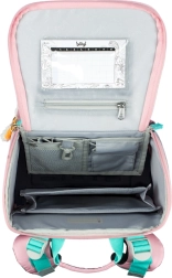 Sættet inkluderer et etagers penalhus med kvalitets YKK-lynlås (uden indhold) og en pose med lynlåslomme, som takket være karabinhagen nemt kan fastgøres til skoletasken. Skoletaskens sidelommer rummer en drikkeflaske, og den isolerede frontlomme med spænde holder madpakken eller småting pænt på plads.