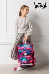 Gør børnene glade med det praktiske og sikre skolesæt BAAGL Ergo Flamingoer. Den ergonomiske skoletaske med det glidende ERGO ADJUSTABLE SYSTEM vokser med barnet, har komfortabelt polstret ryg og fuldt justerbare stropper. Den magnetiske Fidlock-lukning gør det nemt og hurtigt at åbne og lukke med én bevægelse.