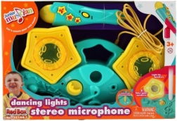 Strømforsynes af 4 AA-batterier (ikke inkluderet), så den er fleksibel til leg indendørs og udendørs. Kablet til tilslutning af MP3 eller mobiltelefon er ikke inkluderet. Pakningens mål er 38 x 26 x 8 cm.