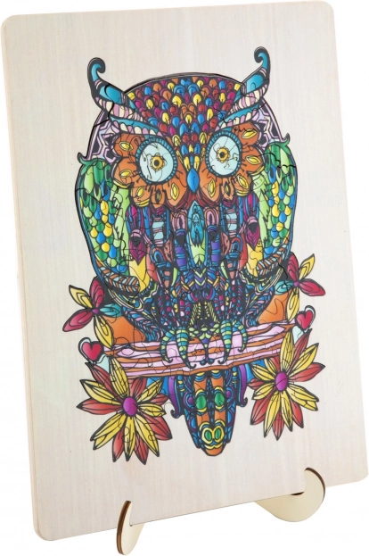 Nyd at samle den kunstnerisk detaljerede og farverige illustration af uglen, som ikke kun giver underholdning, men også en æstetisk oplevelse.