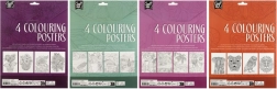 Hver pakke indeholder fire forskellige malebogsplakater for en unik kunstnerisk oplevelse.
