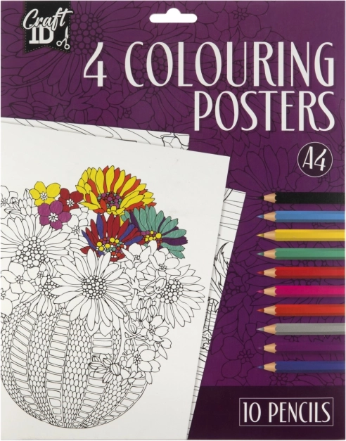 Opdag en verden af kreativitet med vores malebogsplakater fra Craft ID. Hver pakke indeholder fire plakater, der trækker dig ind i en kunstnerisk verden fuld af fantasi. Plakaterne rummer detaljerede illustrationer, fra blomsteruniverser til dyreansigter, som venter på dine farver.