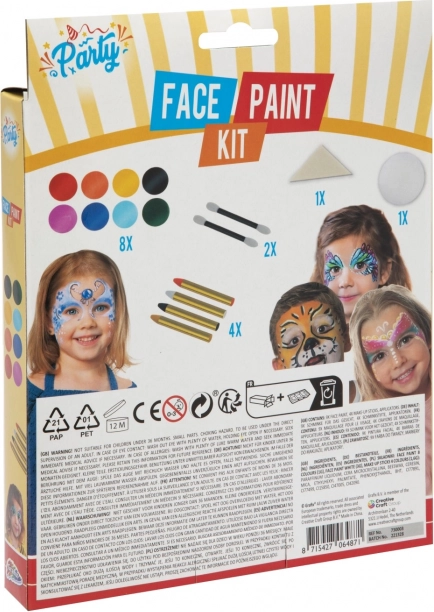 Sættet til ansigtsmaling er ideelt til enhver fest, hvor du ønsker at skinne med kreative designs. Det indeholder otte ansigtsfarver, herunder levende og farverige toner, som dine børn vil elske. Påføringen er enkel, blot påfør farverne forsigtigt på ansigtet eller kroppen med applikatoren. Til større flader kan du anvende svampen for en jævn dækning.