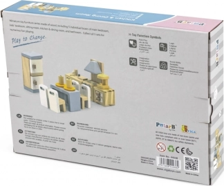 Oplev magien ved træsættet af møbler fra det anerkendte mærke PolarB, der inkluderer køkken og spisestue. Dette sæt er lavet af materiale af høj kvalitet og er ideelt til at udvikle børns fantasi. Børn kan skabe deres egne scenarier og arrangere de enkelte stykker efter deres præference.