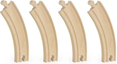 Pakke med 4 kurveskinner. Disse skinner fra Viga er kompatible med skinner fra Maxim. Pakket i pose. Mål på kurven ca. 18×4×1 cm. Alder 3+