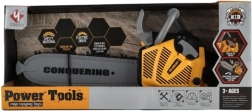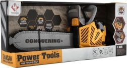 Denne børnekædesav i realistisk udførelse giver en autentisk legeoplevelse – efter et træk i starteren “starter” den, ved tryk på knappen kører det sikre bevægelige blad, og det hele ledsages af lys- og lydeffekter. Ideel til små entusiaster af træarbejde og rolleleg.