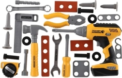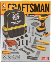 Sættet indeholder 28 stykker værktøj, inklusive en boremaskine, der simulerer rigtige arbejdsredskaber til sjov og lærerig leg.