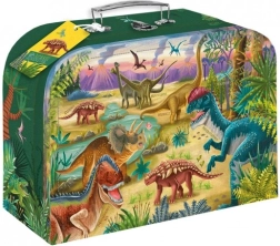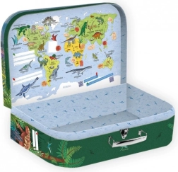 Smuk skolekuffert med dinosaurmotiver er ideel til børn, der elsker eventyr. Perfekt til skolen eller til opbevaring af legetøj.