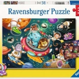 Tag på rum-eventyr med to puslespil i én æske, hver i størrelsen 26 x 18 cm. Disse puslespil er ideelle til at udvikle børns motoriske færdigheder og logiske tænkning.