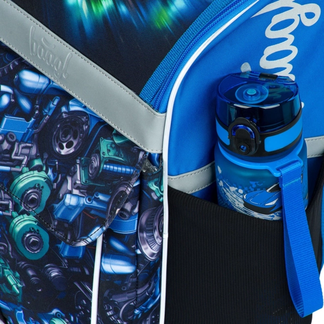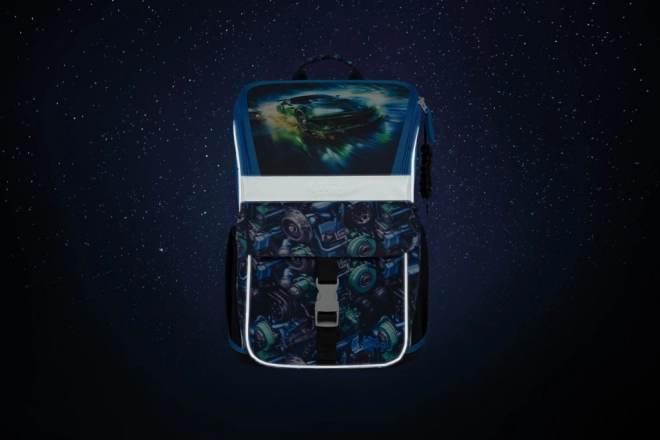 Praktisk og stilfuldt sæt med racerbilmotiv gør hver skoledag lettere. Den ergonomisk formede skoletaske med det justerbare rygsystem ERGO ADJUSTABLE SYSTEM tilpasses præcist til barnets højde, mens de justerbare skulder-, bryst- og sidekompressionsstropper sikrer komfort og korrekt fordeling af belastningen.