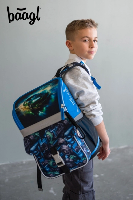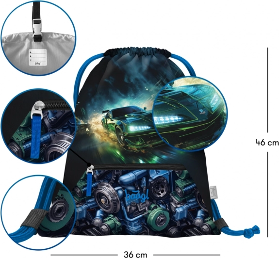 Baagl Zippy skolesæt med racerbil til de første skoleår indeholder en ergonomisk skoletaske med justerbart ERGO ADJUSTABLE SYSTEM, et penalhus med ét lag og en snørepose med lomme. Skoletasken har et opklappeligt åbningssystem, en praktisk inddeler, reflekterende detaljer og vandafvisende materiale for daglig pålidelighed.