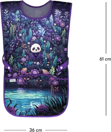 Takket være målene 61 × 36 cm dækker det den forreste del af kroppen, og de justerbare remme giver en god pasform til forskellige kropsbygninger. De to nederste lommer rummer pensler, farveblyanter og en serviet, så den lille skaber har alt lige ved hånden.