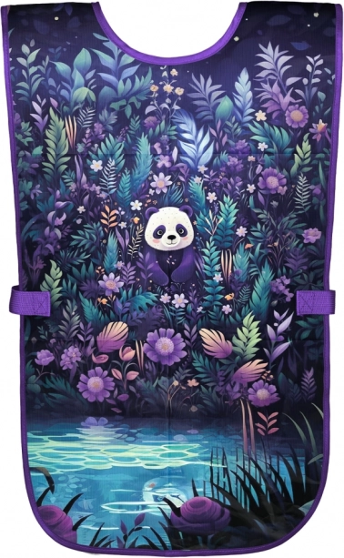 Det legesyge design med en panda og livlige farver begejstrer børn, mens det robuste, let aftørlige tekstil beskytter T-shirt og sweatshirt mod maling, vand og lim. Forklædet er ideelt til billedkunst, håndværk samt kreativt arbejde og madlavning derhjemme.