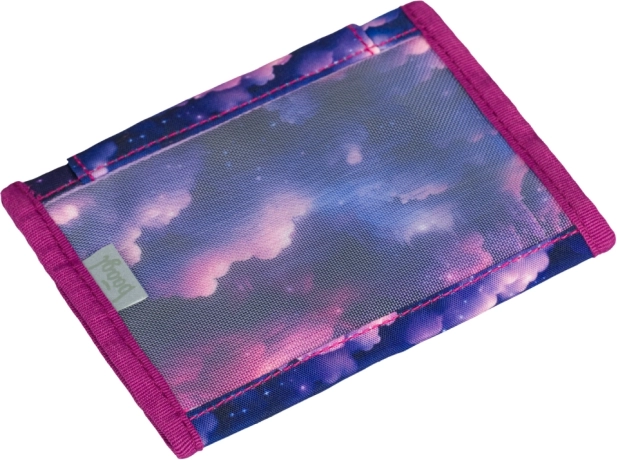 Det indvendige layout er designet til overskuelig opbevaring af sedler, kort og id-kort, og der er en separat lynlåslomme til mønter. Velcrolukningen holder indholdet sikkert lukket. Det farverige design med enhjørning og stjernemotiv fanger øjet med det samme og matcher fint med andre accessories.