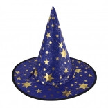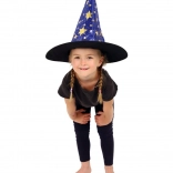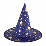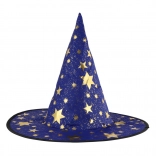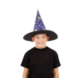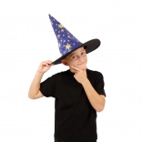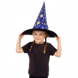 Denne blå‑guld heksehat med stjerneprint forvandler hvert barn til en lille magiker. Takket være det lette tekstil er den behagelig at bære, holder formen og fuldender kostumet til karneval, udklædning eller teaterforestillinger.