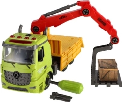 Denne skru-selv konstruktionsbil med en funktionsdygtig kranarm giver børn masser af kreativitet. Barnet kan skrue køretøjet fra hinanden og samle det igen, træne finmotorikken og forstå, hvordan ting fungerer. Friktionsdrevet sørger for jævn kørsel, mens lys- og lydeffekter forstærker stemningen af en rigtig byggeplads.