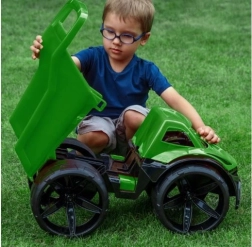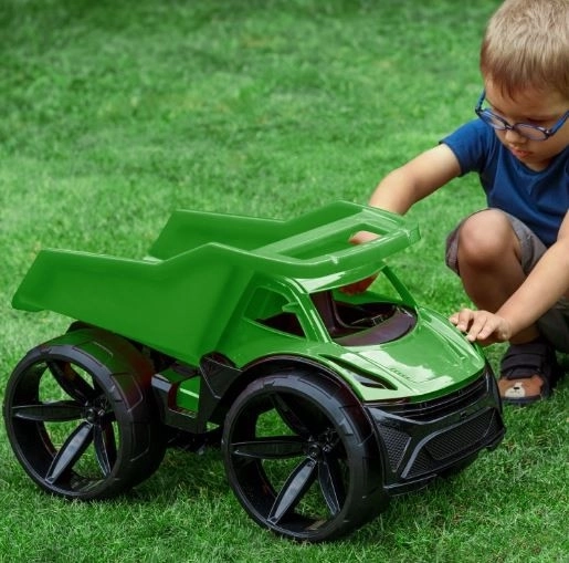 Tipvognen MAXIMUS i grøn imponerer med futuristisk look, store matte hjul og omhyggeligt udførte detaljer. Den lette, men robuste konstruktion er nem at styre selv for mindre børn, og takket være den slidstærke plast klarer den leg i haven, i parken og på børneværelset.
