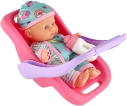 Denne søde dukke med farverigt tøj er et godt valg til at udvikle empati, fantasi og finmotorik. Bærestolen/autostolen med robust håndtag gør det let at bære og placere dukken sikkert, mens den medfølgende sutteflaske understøtter autentisk pasning og madning.