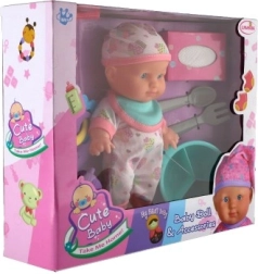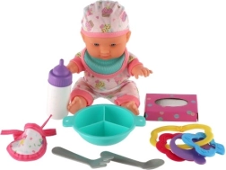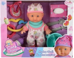 Denne babydukke på 22 cm er en fantastisk legekammerat til hverdagens leg. Takket være den faste plastkrop holder den formen godt og er let at holde ren. Sættet indeholder alt, hvad der er nødvendigt til babypleje – fra fodring til underholdning.