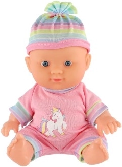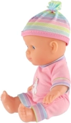 Denne charmerende babydukke er et glimrende valg til børns rollelege. Den har en fast plastkrop, så den holder til intens leg, og leveres med en praktisk bæresele/autostol for sikker og bekvem transport. Takket være den kompakte størrelse på 20 cm passer den i små hænder og er let at håndtere.