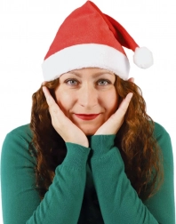 Denne traditionelle røde hue med lys pelskant og hvid kvast er et uundværligt tilbehør i adventstiden. Takket være den behagelige tekstile finish er den komfortabel at have på hele aftenen og passer perfekt til både julekostumer og afslappet tøj.