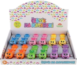 Denne farverige optrækkelige orm er et glimrende valg som det første bevægelige legetøj. Det er nok at dreje på optræksskruen i siden, så begynder ormen at bevæge sig – den kryber frem, vipper sødt og motiverer børn til aktiv leg.