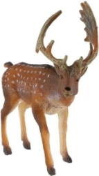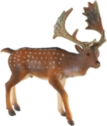Figuren gengiver europæisk dådyr med plettet pels og de karakteristiske skovlformede gevirer – ideel til undervisning og leg.