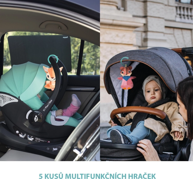 Legetøjet kan nemt tages af og fastgøres på barnevogn eller autostol, hvilket muliggør leg og aktiviteter på farten.
