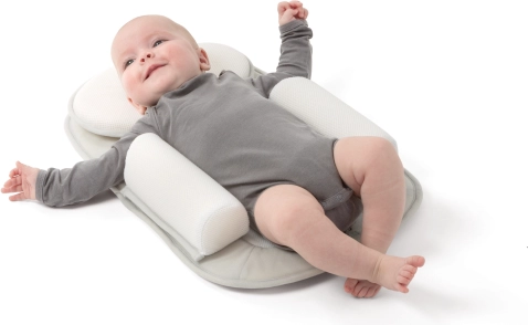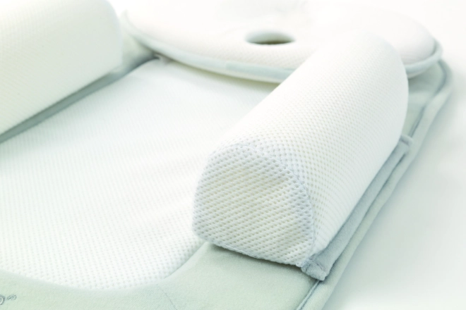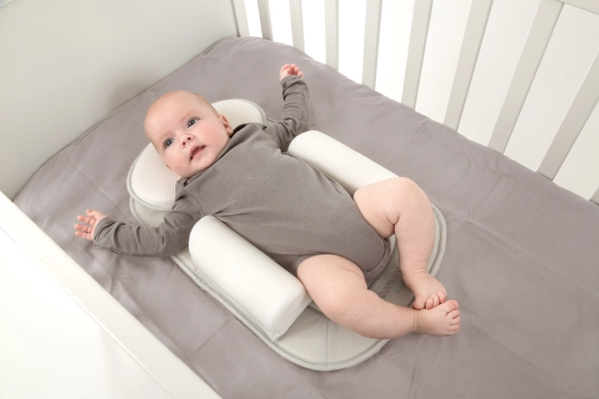 Baby-positioneringsunderlaget er designet til maksimal komfort for din lille. Med den holdes barnets hoved i en sikker og behagelig position, hvilket hjælper med at forebygge risikoen for fladt baghoved. Det kompakte og praktiske design gør det let at bruge næsten overalt – i barnevogn, tremmeseng, seng eller liggeplads.