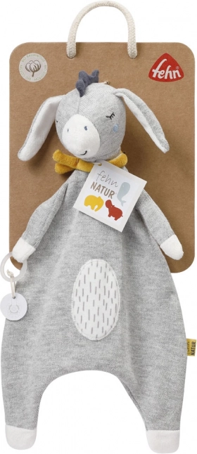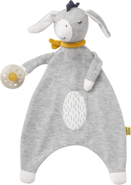 Den bløde plyds-æsel fremkalder et smil hos enhver baby og bliver hurtigt deres bedste ven. Om dagen fungerer den som et sødt legetøj, og om natten hjælper den barnet med at falde i søvn. Takket være den praktiske ring kan en sut fastgøres til krammekluden, så den ikke bliver væk – hverken derhjemme eller på farten.