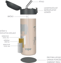 Sikkerhed først: Det tætte låg sikrer, at intet slipper ud af termoflasken, og blødt silikonesugerør vil også være populært hos børn. Materialerne er uden skadelige stoffer og BPA, hvilket sikrer maksimal sikkerhed.