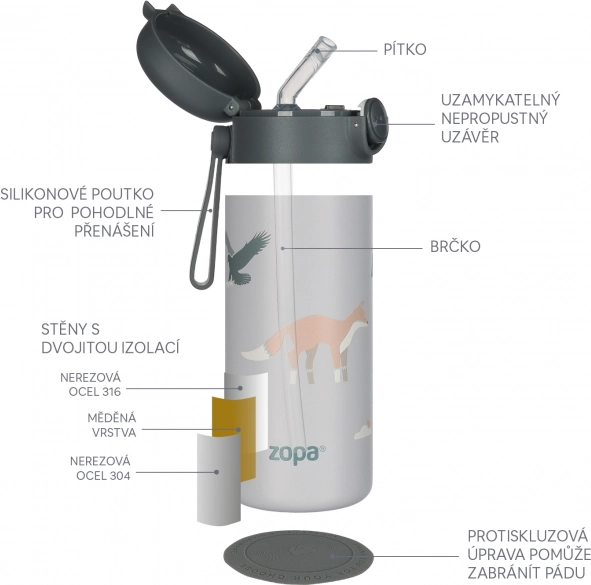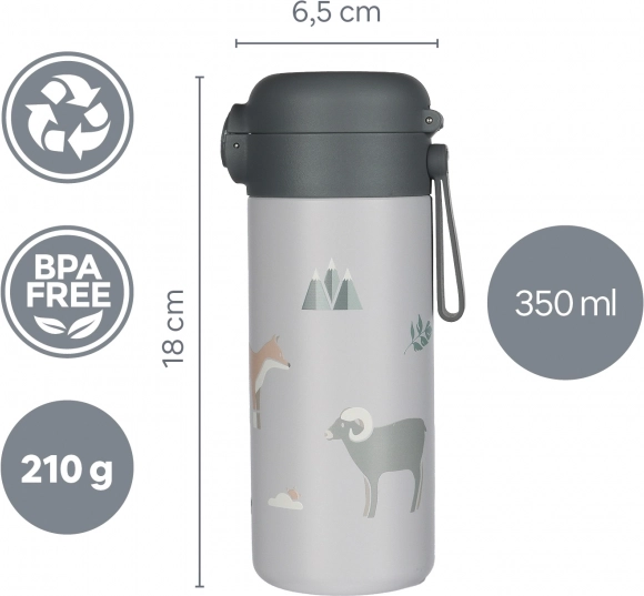 En designet termoflaske med glade motiver og en kapacitet på 350 ml er udstyret med en pålidelig lufttæt lukning og et dobbelt lag af kvalitets rustfrit stål, så din drik altid forbliver, som du tilbereder den – varme drikke holder sig varme i op til 12 timer og kolde i op til 24 timer.