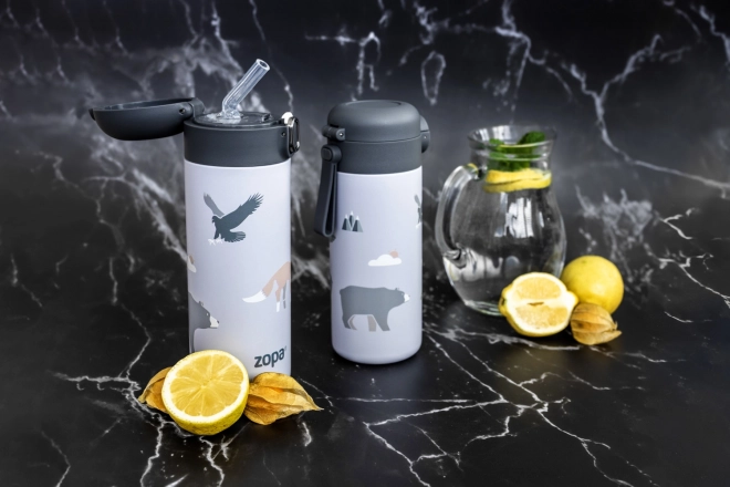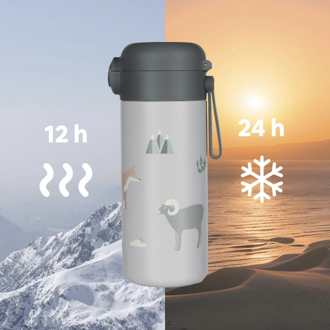 En stilfuld termoflaske med glade motiver på 350 ml er udstyret med en pålidelig lufttæt lukning og et dobbelt lag af kvalitets rustfrit stål, så drikken altid er, som du tilbereder den – varme drikke holdes varme i op til 12 timer og kolde i op til 24 timer.