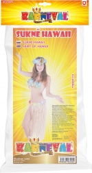 Denne stilfulde hawaiiske nederdel er det perfekte grundlag for et eksotisk kostume. Den er lavet af tynde plaststrimler i en naturtone og har i taljen farverige blomster, der skaber en markant tropisk effekt. 72 cm i længden sikrer flot bevægelse under dans og behagelig brug gennem hele arrangementet.