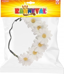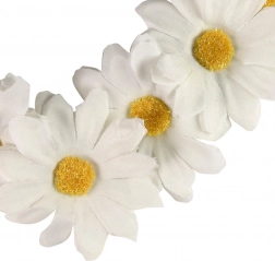 Denne charmerende hårbøjle med margueritter lyser straks enhver kostumeudklædning eller almindeligt sommeroutfit op. Den elastiske gummi sikrer behagelig brug hele dagen, mens de rigt dekorerede blomster skaber et effektfuldt og lystigt udtryk.