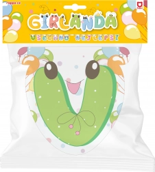 Denne grønne papirguirlande med teksten “Tillykke” er et fremragende valg til fødselsdage, børnefester og temaaftener. Takket være den enkle montering kan du på ingen tid hænge den over bordet, på væggen eller i fotohjørnet og skabe en stilfuld atmosfære.