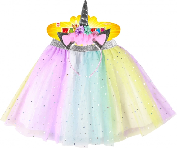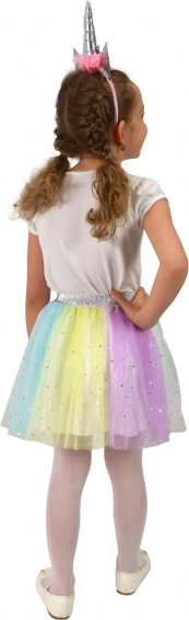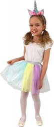 Dette charmerende sæt bringer enhjørningemagi ind i børnegarderoben. Den lette og luftige tutu-nederdel i pastelfarver snurrer smukt, og takket være den elastiske talje er den nem at tage på og behagelig at have på. Stilen fuldendes af hårbøjlen med horn og blomsterpynt, der forvandler en almindelig dag til et eventyr.