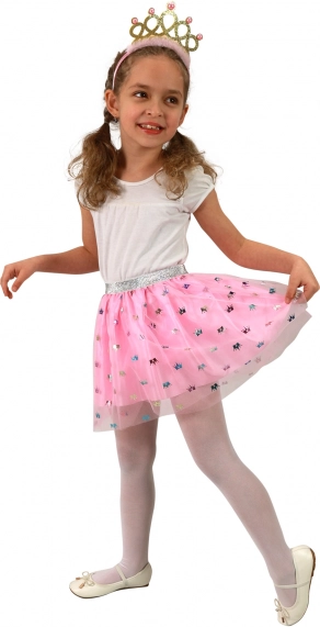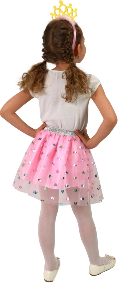 Det lyserøde tylskørt med fine kroneprints skaber en betagende prinsesseeffekt til enhver lejlighed.