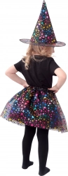 Dette søde heksekostume til børn i sort er pyntet med et farverigt stjernemønster, som straks fanger opmærksomheden. Sættet inkluderer et luftigt tutuskørt med en længde på ca. 30 cm og en matchende spidshat, så ethvert barn på et øjeblik kan blive til en lille heks.