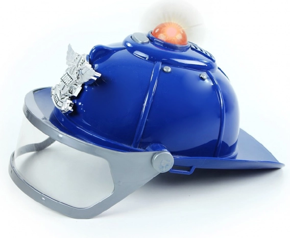 Politi hjelm til små helte med beskyttelsesvisir, der blinker og spiller ved tryk på en knap. Justerbar størrelse for komfortabel pasform.